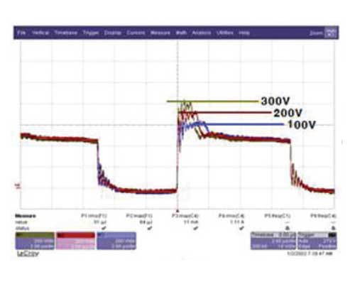 Rapid increase of current induced by change in reignition voltage : 700V → 1000V - Adjustable reignition voltage : 50V ~ 300V
